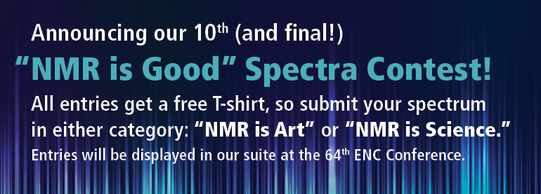 Submit your favorite NMR spectrum to be showcased at ENC 2023 as "NMR is art" or as "NMR is science." You could win your choice of a $500 travel stipend or $500 worth of CIL product. Every submission gets a CIL T-shirt! (Limit one per person)