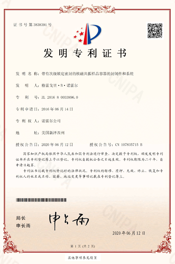 注:ZL 2016 8 0033896.0專利持有人歸屬于諾雷爾公司(Norell, Inc. )