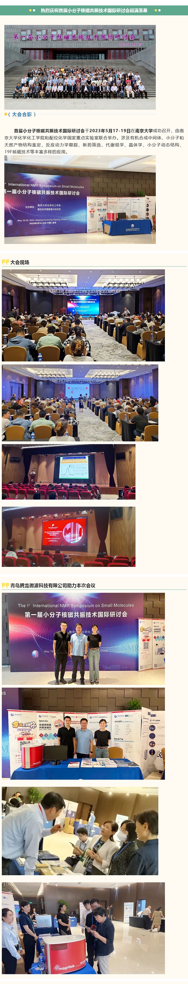 首屆小分子核磁共振技術(shù)國(guó)際研討會(huì)于2023年5月17-19日在南京大學(xué)成功召開(kāi),由南京大學(xué)化學(xué)化工學(xué)院和配位化學(xué)國(guó)家重點(diǎn)實(shí)驗(yàn)室聯(lián)合舉辦。涉及有機(jī)合成中間體、小分子和天然產(chǎn)物結(jié)構(gòu)鑒定,反應(yīng)動(dòng)力學(xué)跟蹤、新藥篩選、代謝組學(xué)、晶體學(xué)、小分子動(dòng)態(tài)結(jié)構(gòu)、19F核磁技術(shù)等豐富多樣的應(yīng)用。