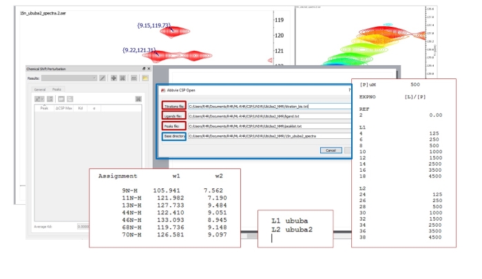 只需在“titration file”中按順序列出滴定系列即可。所用配體的名稱編碼在“l(fā)igands file”中。當CSP自動運行分析時,它會為“titration file”中列出的每個滴定創(chuàng)建不同的Mnova文件,并且Mnova文件根據(jù)配體的名稱進行命名。