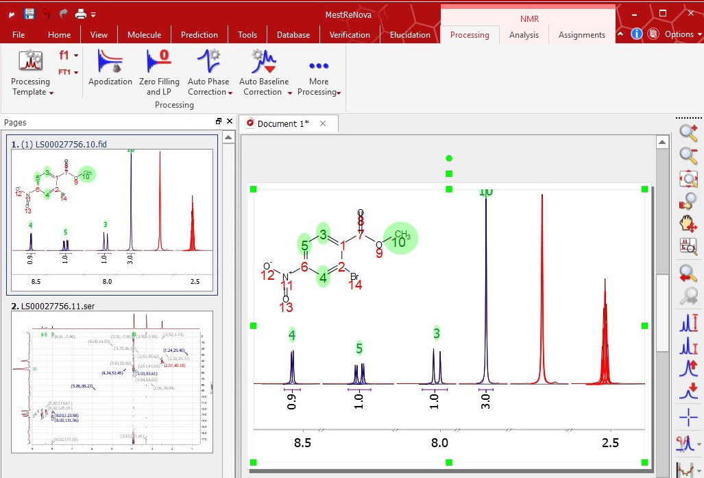 您只需從 NMR 儀器拖放一維和二維數(shù)據(jù),Mnova 即可自動處理譜圖,并為分析做好準備。