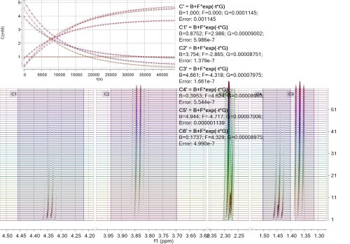 Mnova結合了“數(shù)據(jù)分析”功能,用于分析一系列1D NMR實驗。它具有處理多個系列的能力,例如,可以分析同一實驗中多個共振的衰減,或滴定期間的一系列峰值偏移。