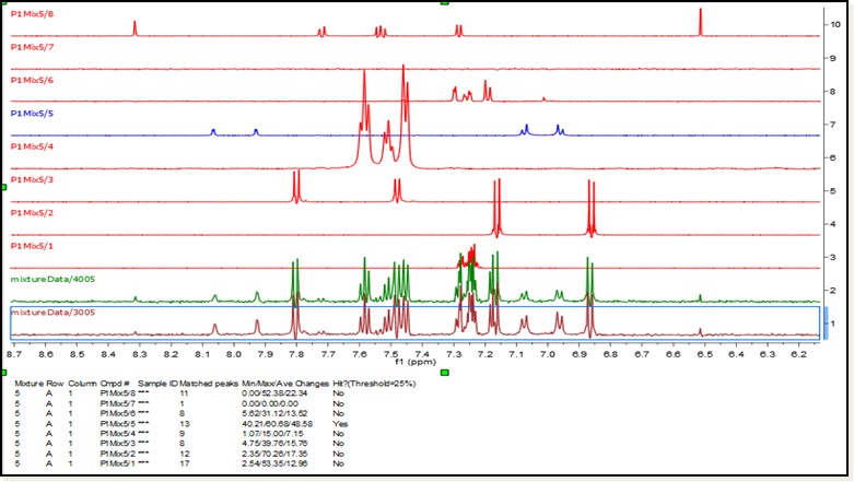 模式識別算法map實(shí)驗(yàn)數(shù)據(jù) 可以處理多種篩選實(shí)驗(yàn)的數(shù)據(jù):STD、WaterLOGSY、T1rho、CPMG實(shí)驗(yàn) 利用去卷積的方式進(jìn)行峰值拾?。▽τ谌跣盘栆草^為有效) Result viewer可以快速查看活性化合物 可以將分析數(shù)據(jù)導(dǎo)出用于統(tǒng)計(jì) |