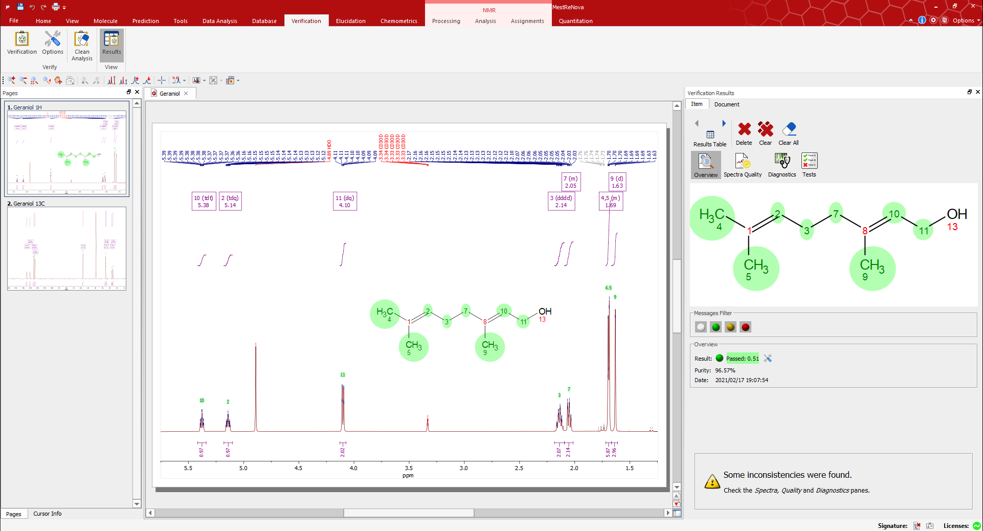 然后系統(tǒng)會對提出的結構進行排序,并快速告訴您哪一個更適合實驗數(shù)據(jù)。如果對結果不滿意,可以輕松地在Mnova中對數(shù)據(jù)進行重新處理。